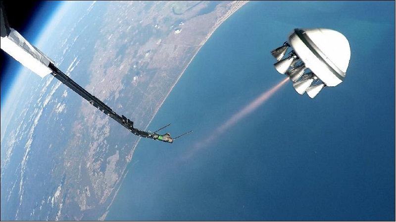 وحمل البالون الكبسولة بنجاح حتى علامة الارتفاع، حيث تمكن من إشعال محركاته مما سمح لها بالطفو في الفضاء.