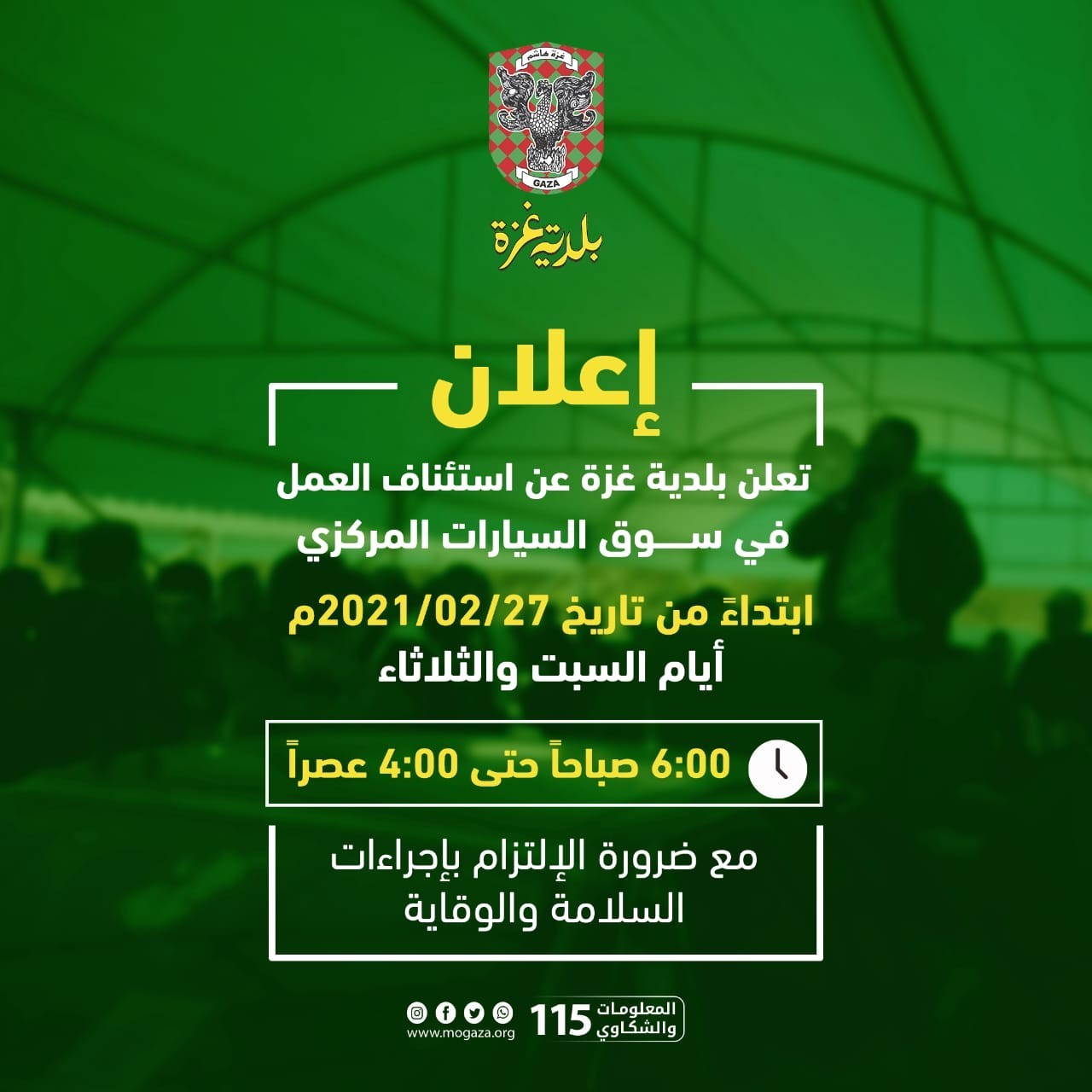 بلدية غزة تعلن موعد عودة العمل بسوق السيارات المركزي