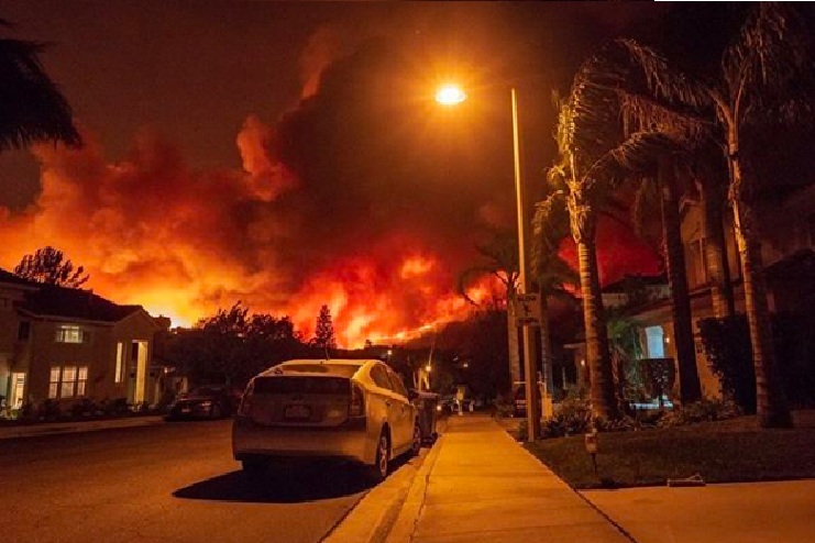 ووفقًا لوسائل الإعلام الأمريكية، فقد تخطت الحرائق في غرب مدينة لوس انجيلوس الطريق السريع وامتدت إلى المناطق السكنية قرب الساحل بما فيها منطقة ماليبو الشهيرة والتي التهمت النيران بعض المنازل فيها.