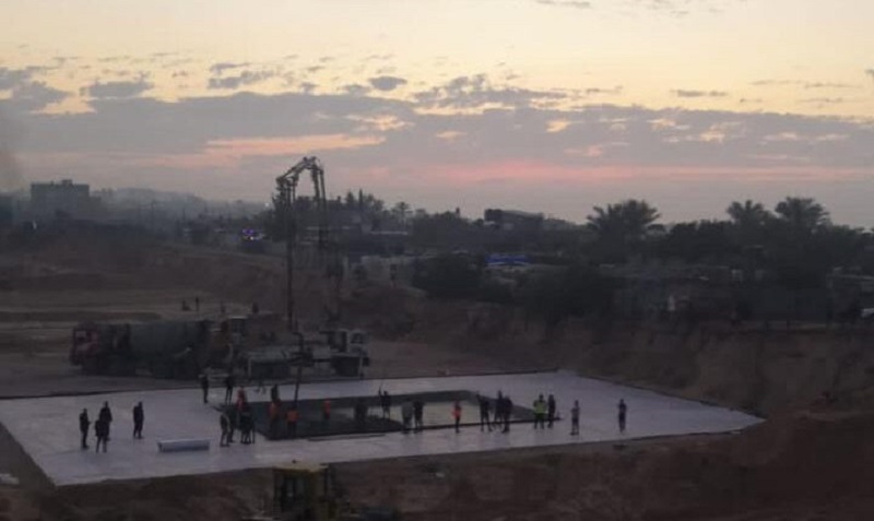 وشهدت المنطقة وضع حجر الأساس للبناء وصب القاعدة الأساسية للمدينة السكنية شمال القطاع.