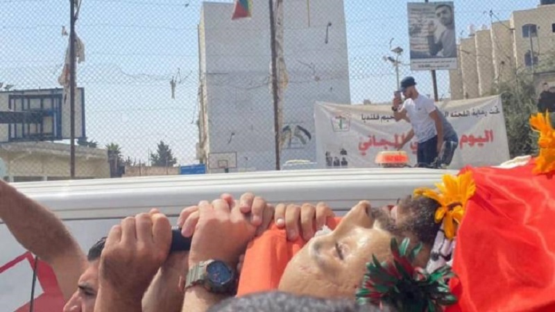 أهالي مخيم قلنديا يشيعون جثمان الشهيد يزن عفانة