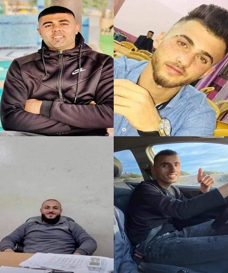 وقالت الصحة، في بيان، إن الشهداء هم: رأفت وائل عويضات 21عاماً، ومالك عوني لافي 22عاماً، وأدهم مجدي عويضات 22عاماً، وإبراهيم وائل عويضات 27عاماً، وثائر عويضات 28عاماً.