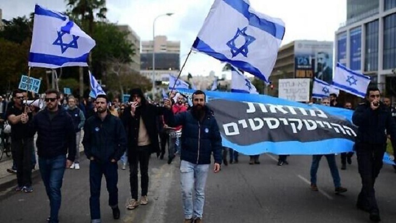 وحمل المتظاهرون العلم الإسرائيلي ولافتات معارضة لقرارات الحكومة بشأن الحد من قوة السلطة القضائية، وفق المصدر نفسه.