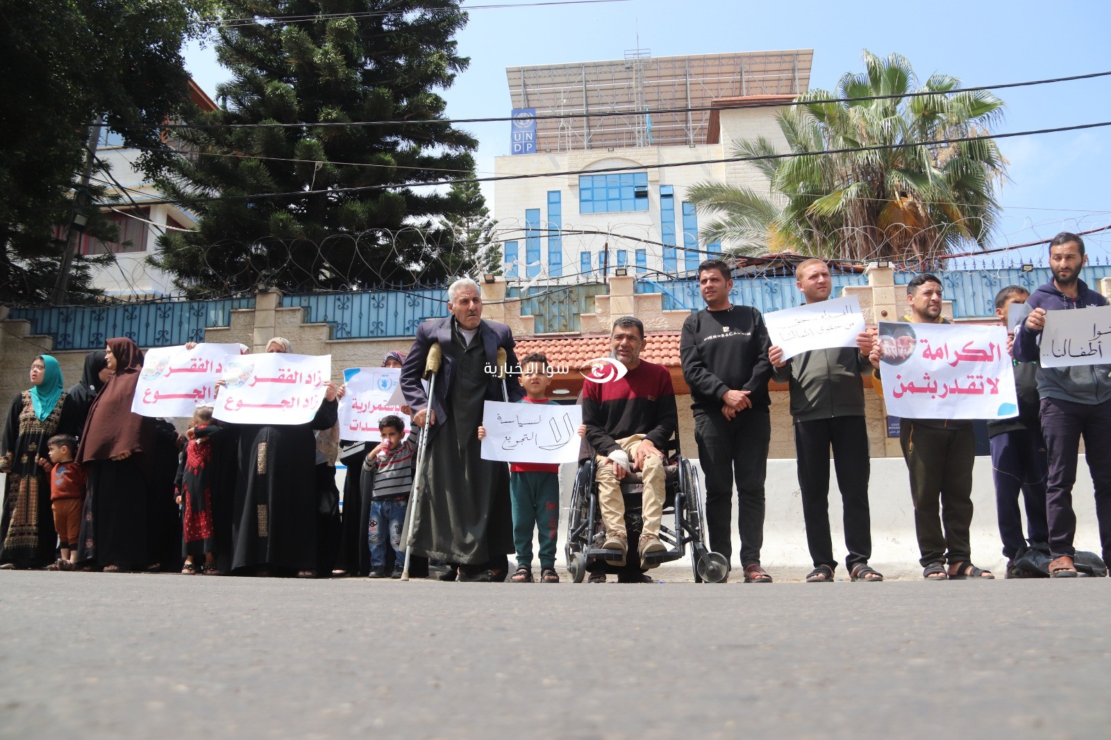 الكوفية غزة: نظم عشرات المواطنين اليوم الأحد، وقفة احتجاجية أمام مقر الأمم المتحدة في غزة احتجاجا على وقف برنامج الأغذية العالمي مساعداته.