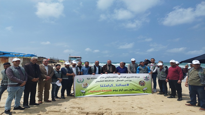 غزة: نفد مجلس العمال بحركة فتح في محافظة الشمال "قلعة الشهيد القائد جمال ابو الجديان"، وبحضور الأخوة في قيادة المحافظة، اليوم الأحد، يوم تطوعي لتنظيف شاطئ بحر شمال غزة.