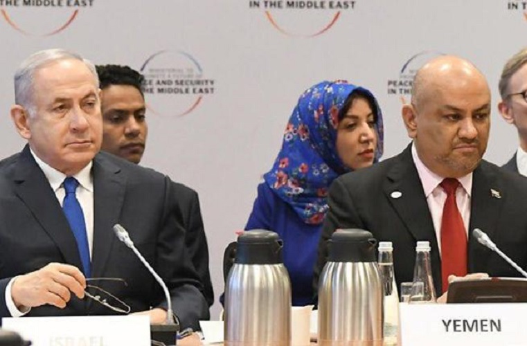 وتابع، أن نتنياهو توج زيارته إلى سلطنة عمان قبل أشهر بلقاء ومصافحة حارة مع وزير خارجيتها يوسف بن علوي خلال المؤتمر في وارسو قبل أن يختتم لقاءاته بمقابلة وزير خارجية اليمن خالد اليماني.