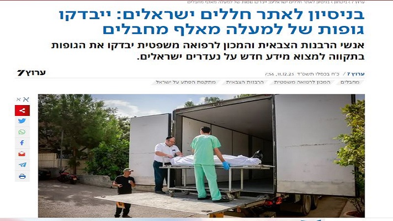 ترجمة خاصة للكوفية: ذكرت القناة السابعة العبرية، أنه ستبدأ هذا الأسبوع عملية واسعة النطاق للتعرف على جثامين عناصر المقاومة وفلسطينيين شاركوا في هجوم 7 أكتوبر للتأكد أنه ليس من بينهم إسرائيليون، إذ يبلغ عددهم أكثر من ألف جثمان.