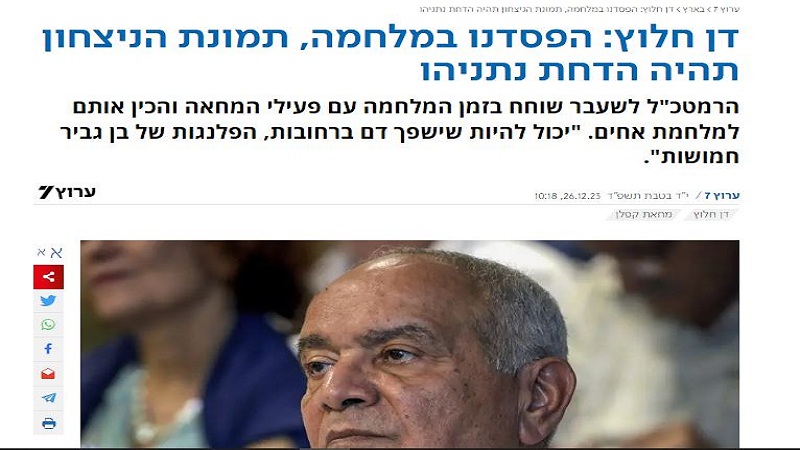 ترجمة خاصة للكوفية: قال رئيس الأركان السابق دان حالوتس، إن إسرائيل خسرت الحرب ضد حماس، وإن صورة النصر الوحيدة التي ستتحقق هي الإطاحة برئيس الوزراء بنيامين نتنياهو.