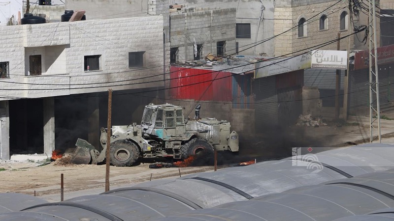 وتخلل اقتحام المخيم انتشار لمشاة وقناصة الاحتلال، فيما تسمع أصوات انفجارات وإطلاق نار من داخل المخيم بين الفينة والأخرى، وعملت جرافة الاحتلال على احداث تدمير وأضرار في بعض المحلات التجارية وسط المخيم.
