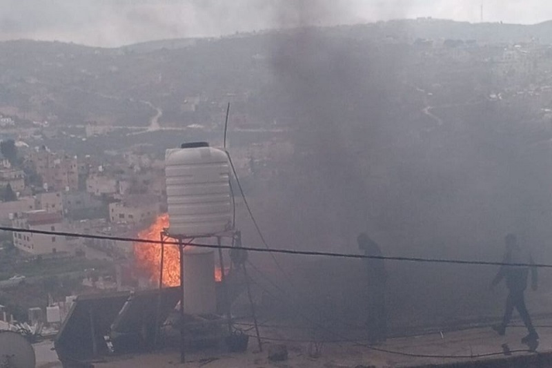 احتراق منزل استهدفه الاحتلال بقنابل الغاز في بلدة بيتا جنوب نابلس