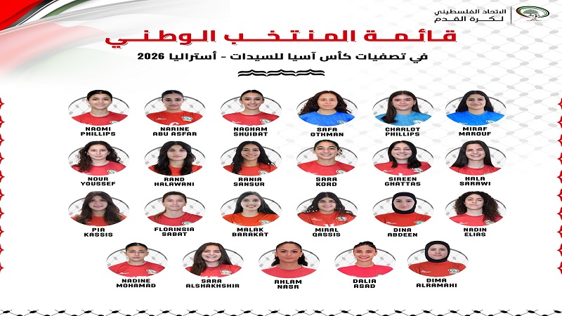 الكوفية القدس المحتلة - أعلن الجهاز الفني للمنتخب الوطني، اليوم الأحد، القائمة المستدعاة لخوض منافسات المجموعة الثامنة من تصفيات كأس آسيا للسيدات- 2026.