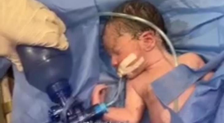 بالفيديو || إنقاذ جَنين من رحم والدته الشهيدة بمستشفى المواصي الميداني