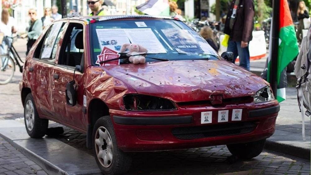 وعن السيارة التي عرضها في أوترخت، أوضح أريجان، أنه عمل مع أقاربه المتطوعين لإيجاد سيارة تشبه بالشكل السيارة التي استشهدت داخلها هند.