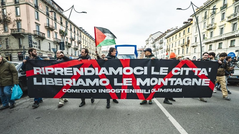 وتمكنت قوات الأمن من منع المحتجين من الوصول إلى صالة سانتاغوليا لهوكي الجليد، قبل أن يتفرقوا لاحقًا. ووفق تقديرات الشرطة، شارك نحو 10 آلاف شخص في التظاهرة، حيث رفع عدد منهم أعلام فلسطين ولافتات داعمة للقضية الفلسطينية، بالتزامن مع مشاركة فريق يمثل "الاحتلال الإسرائيلي"، كما حمل متظاهرون مجسمات ترمز للأشجار التي أُزيلت لإنشاء مضمار جديد للتزلج في كورتينا.