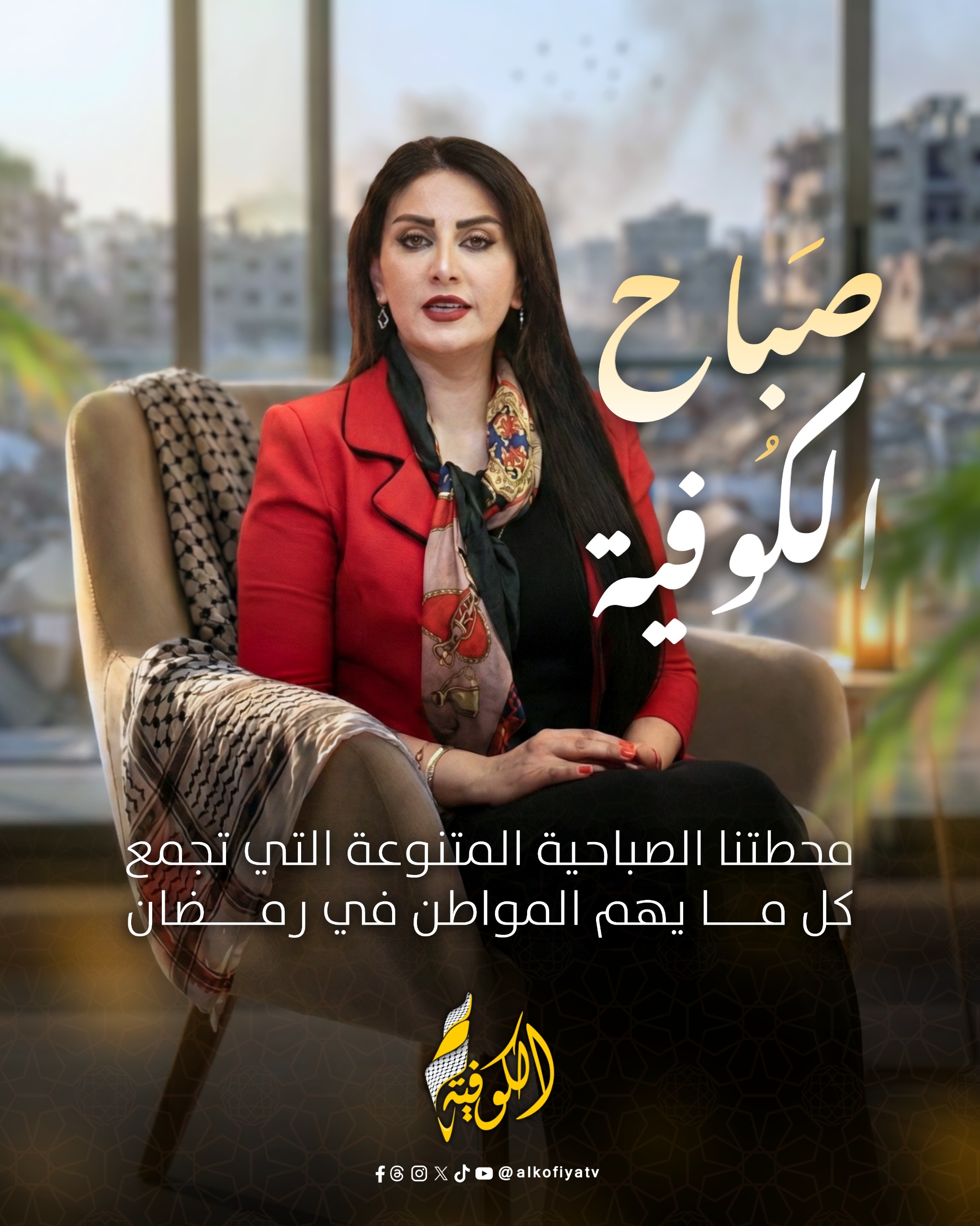 يستمر البرنامج الصباحي "صباح الكوفية" كمنصة حوارية وتوعوية يومية، تجمع بين أخبار الميدان، النصائح الرمضانية، واحتياجات المواطنين العاجلة.