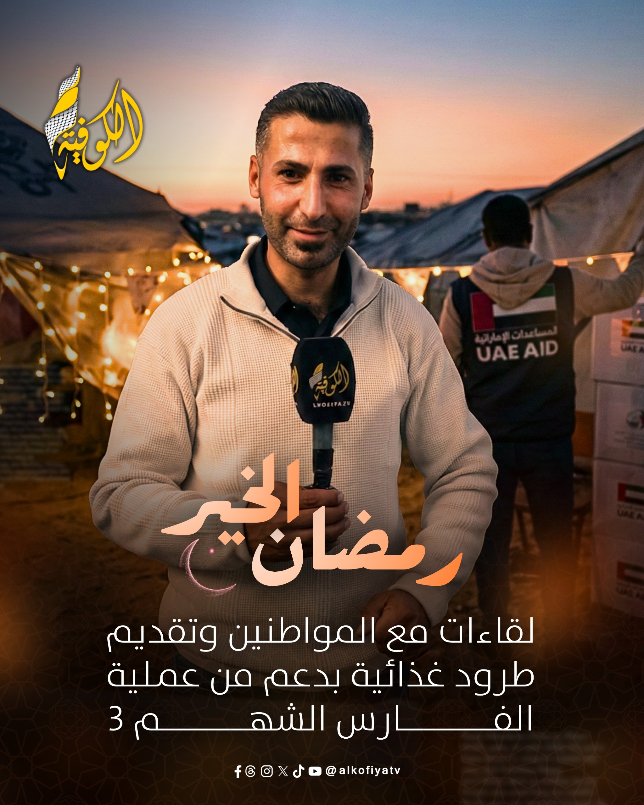 برنامج "رمضان الخير": بالتعاون مع عملية الفارس الشهم 3، يجوب البرنامج الميدان لتقديم طرود غذائية ومساعدات عاجلة للعائلات الأكثر تضرراً.