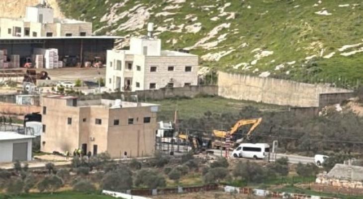 فيديو || جرافات الاحتلال تهدم مبنى ومحال تجارية عند مدخل قرية عنزا جنوب جنين