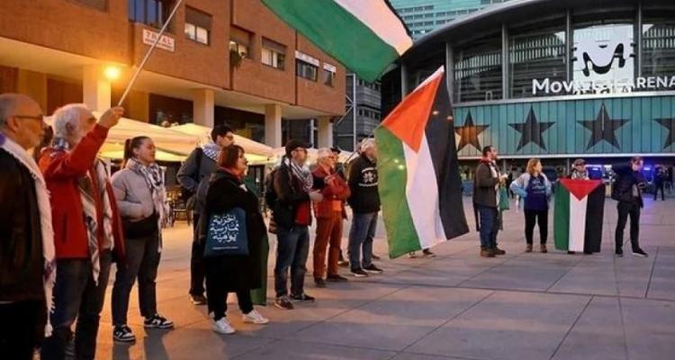 الكوفية مدريد - نظم نشطاء وقفة احتجاجية في العاصمة الإسبانية مدريد، مساء الثلاثاء، قبيل مباراة لكرة السلة جمعت بين فريقي ريال مدريد وهبوعيل تل أبيب، وذلك تعبيرًا عن رفضهم لمشاركة الفريق الإسرائيلي.