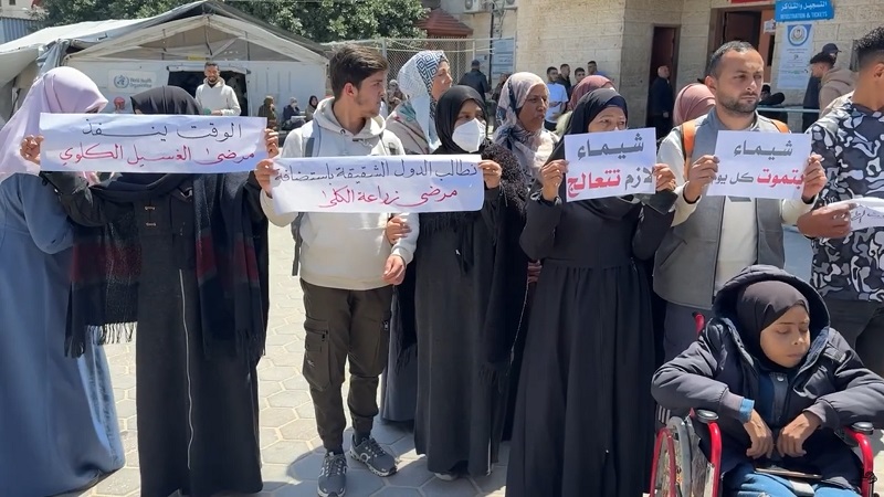 اعتصام في مستشفى شهداء الأقصى للمطالبة بسفر مرضى الكلى وسط تفاقم الأزمة الصحية