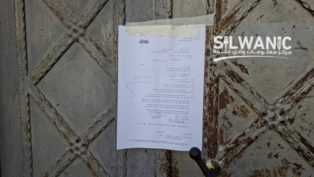 وأفاد مركز معلومات وادي حلوة بالقدس بأن طواقم بلدية الاحتلال برفقة عناصر من الشرطة اقتحمت البلدة، وعلّقت أمر هدم على أحد أبواب المنازل.