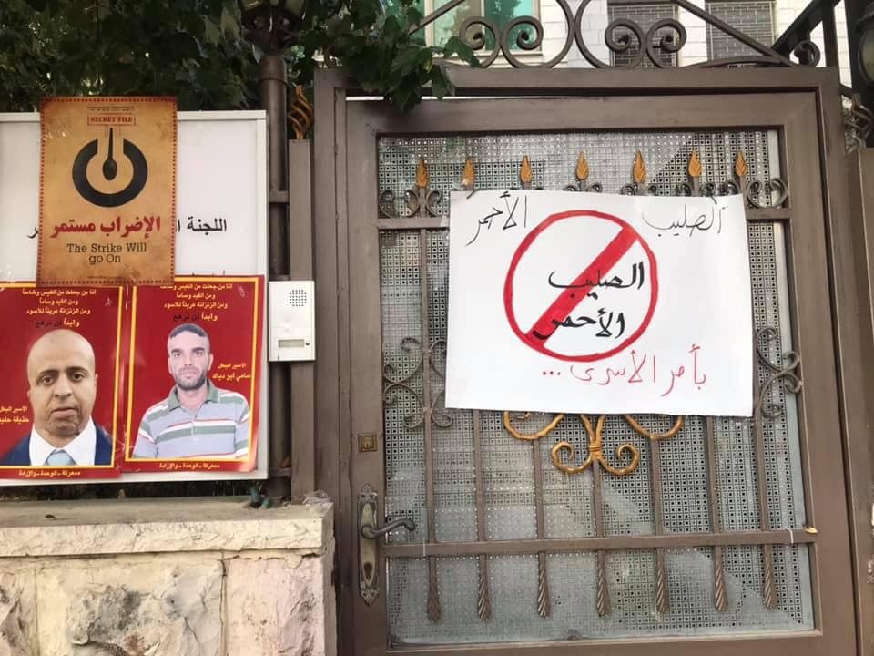 متابعات: في خطوة وصفوها بـ "الإسنادية" للأسرى المضربين والمرضى عن الطعام، قام نشطاء بإغلاق الصليب الأحمر احتجاجاً على تقصيره وتقاعسه في أداء واجبه الأنساني المنوط به تجاه الاسرى.