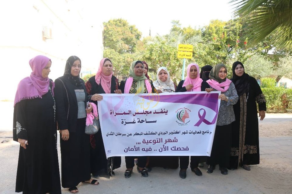 خانيونس: نظم مجلس المرأة في حركة فتح بساحة غزة، اليوم الأحد، زيارة إلى قسم الأورام بمستشفى غزة الأوروبي لتفقد أحوال مرضى السرطان، بالتزامن مع أكتوبر الوردي.