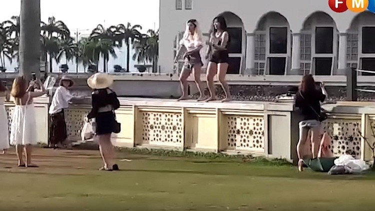 ماليزيا: قررت إدارة جامع مدينة كوتا كينابالو الماليزية، منع السائحين من دخول الجامع بعد قيام فتاتين بالرقص قرب مدخله بشكل استفزازي مرتديتين ثيابًا فاضحة.