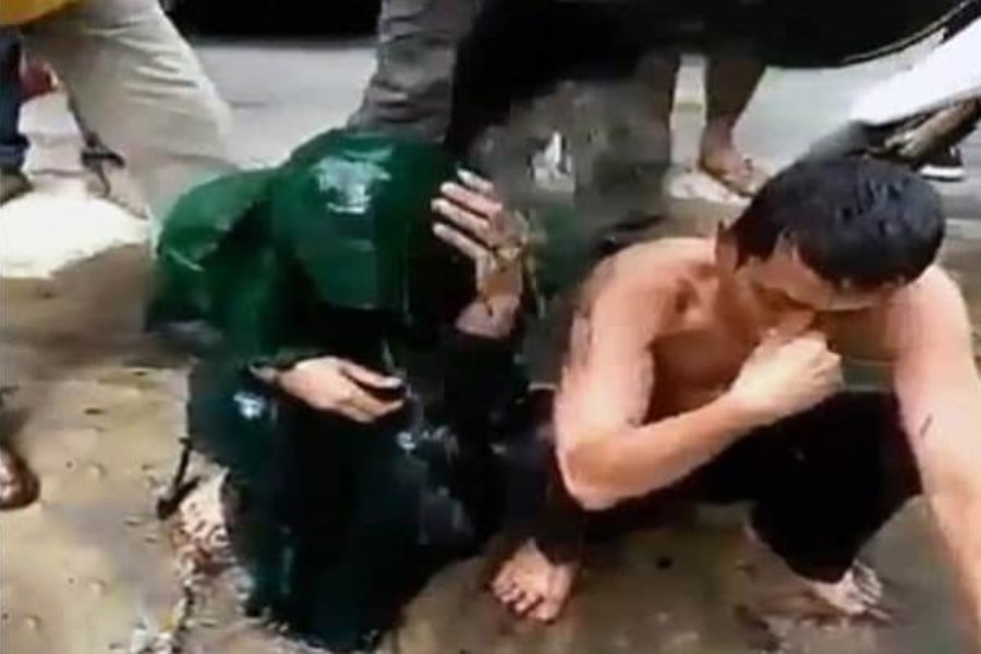 وأظهر الفيديو الرجل والمرأة وهما يرقدان على الأرض، فيما يقوم شخص بسكب دلو مليء بمياه الصرف الصحي فوق رؤوسهم، وذلك في مدينة لانجسا الإندونيسية.