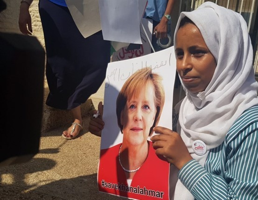 واعتصم الأطفال أمام مقر الممثلية الألمانية ليوجهوا دعواتهم للمستشارة الألمانية التي تزور إسرائيل اليوم وتعقد اجتماعا مع حكومة الاحتلال، بضرورة ثني حكومة الاحتلال عن تهجير الأهالي من قريتهم.