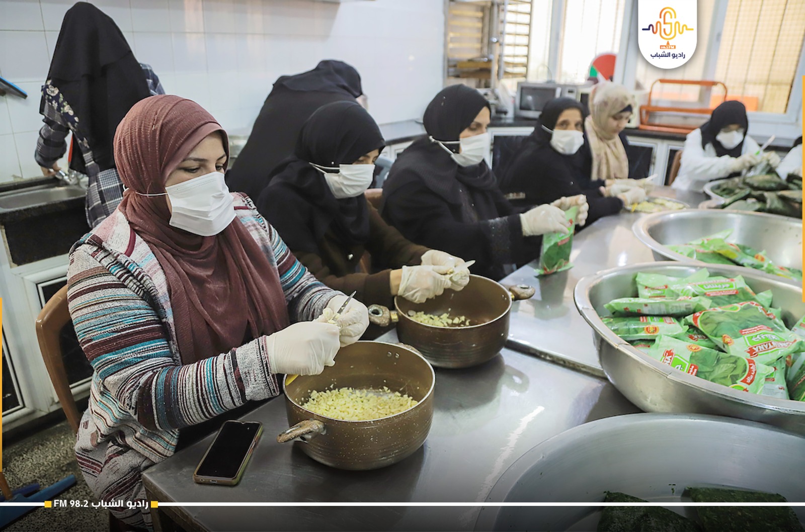 متطوعون فلسطينيون يعدون طعامًا مجانيًا للأسر الفقيرة خلال شهر رمضان المبارك شمال قطاع غزة