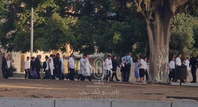 وكثّف المستوطنون انتهاكاتهم منذ الصباح الباكر لحرمة المسجد الأقصى على شكل مجموعات متتالية، وأدوا طقوسا تلمودية عند الأبواب، وفي الساحات.