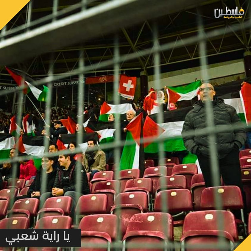 رفعت الجماهير السويسرية العلم الفلسطيني خلال مباراة كرة القدم أقيمت مساء الأربعاء، بين المنتخب السويسري و”المنتخب الإسرائيلي” في تصفيات يورو 2024.
