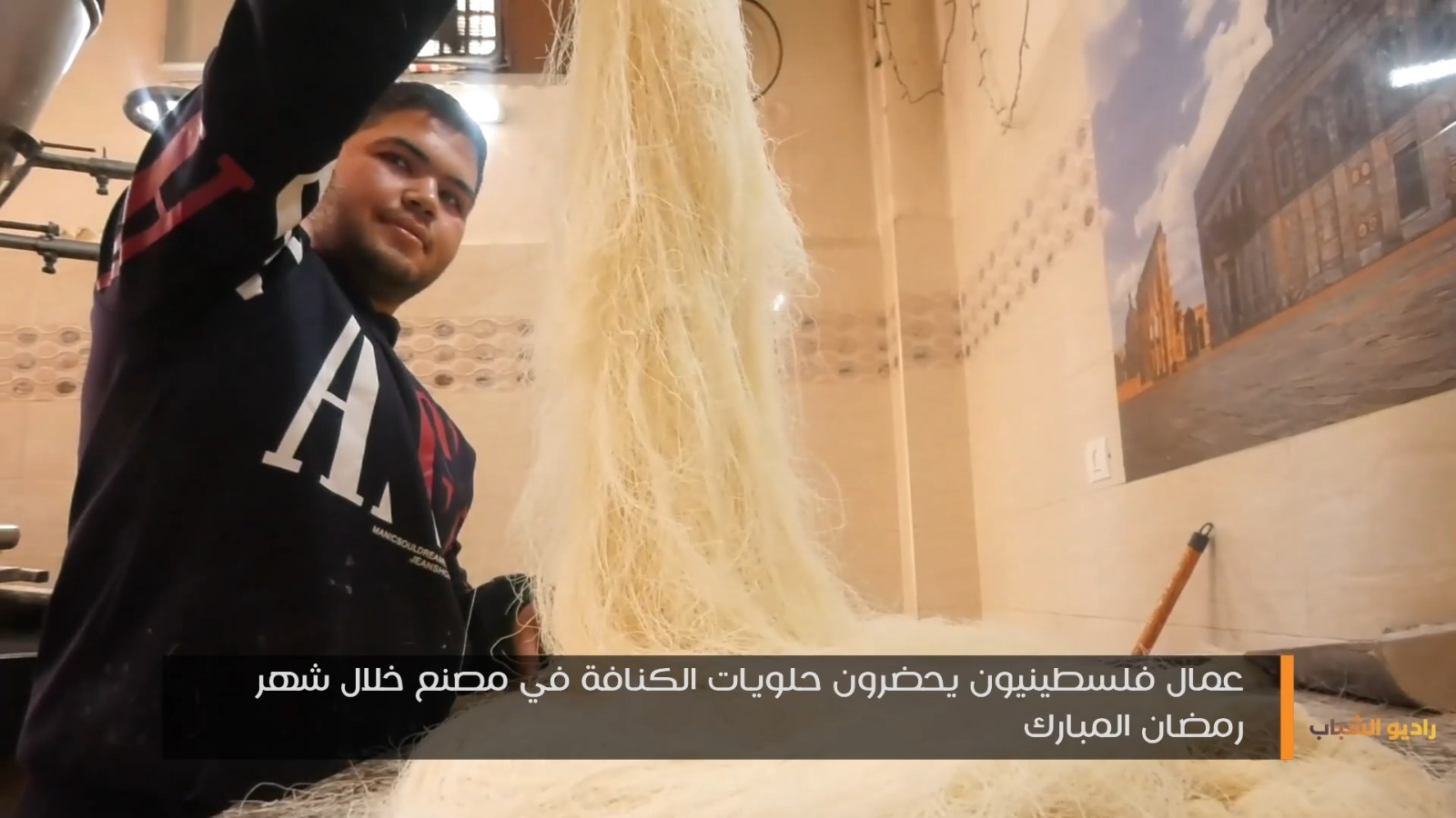 عمال فلسطينيون يحضرون حلويات الكنافة في مصنع خلال شهر رمضان المبارك