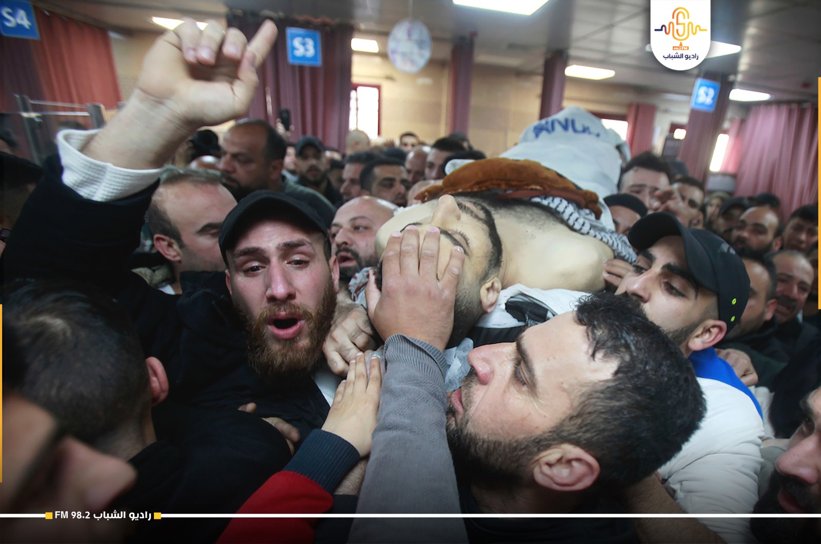 بالصور.. وداع الشهيد محمد أبو بكر أمام مستشفى رفيديا في نابلس