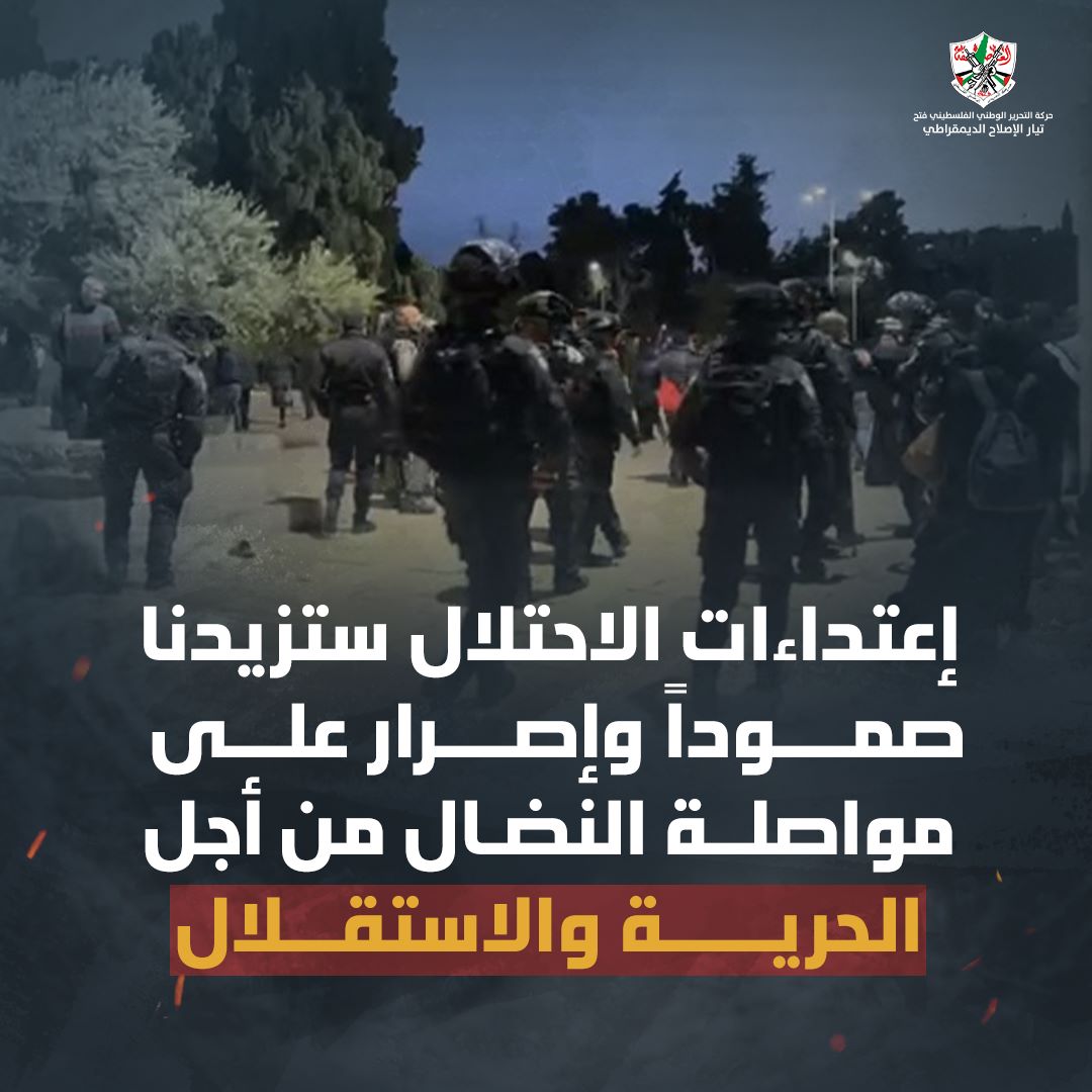 ودعا التيار نشطاء مواقع التواصل الاجتماعي، وكوادره وكافة القوى والمكونات الفلسطينية للتغريد على هاشتاق #الاقصى_في_خطر #الأقصى_يستغيث، لفضح جرائم الاحتلال، وللمطالبة بوقف الهجمة الصهيونية على المقدسات وأهلنا في القدس.