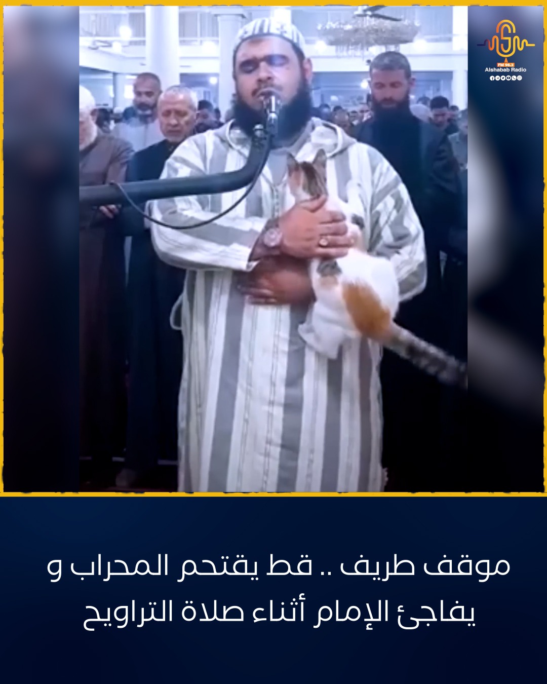 موقف طريف .. قط يقتحم المحراب و يفاجئ الإمام أثناء صلاة التراويح