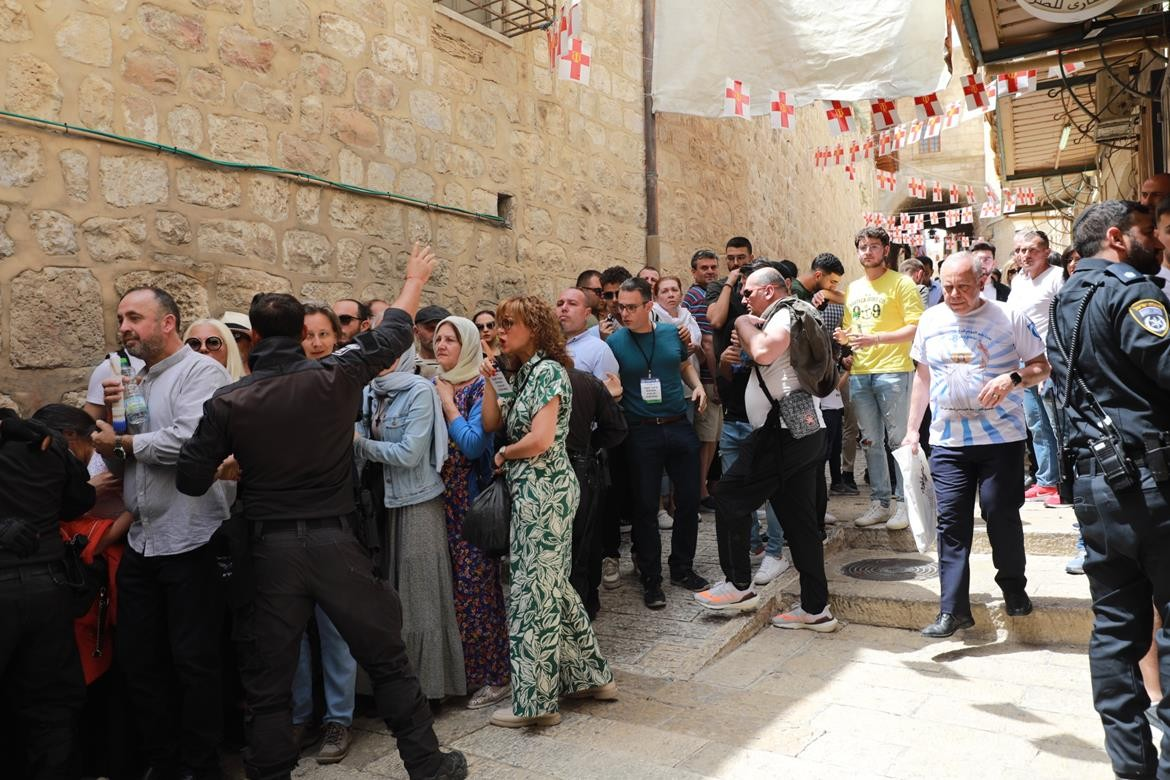 جاء ذلك خلال عرقلة قوات شرطة الاحتلال الإسرائيلي، دخول المسيحيين والمحتفلين بسبت النور إلى كنيسة القيامة في القدس.