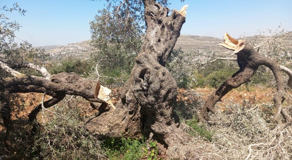 مستوطن يقطع عشرات أشجار الزيتون المعمرة جنوب نابلس
