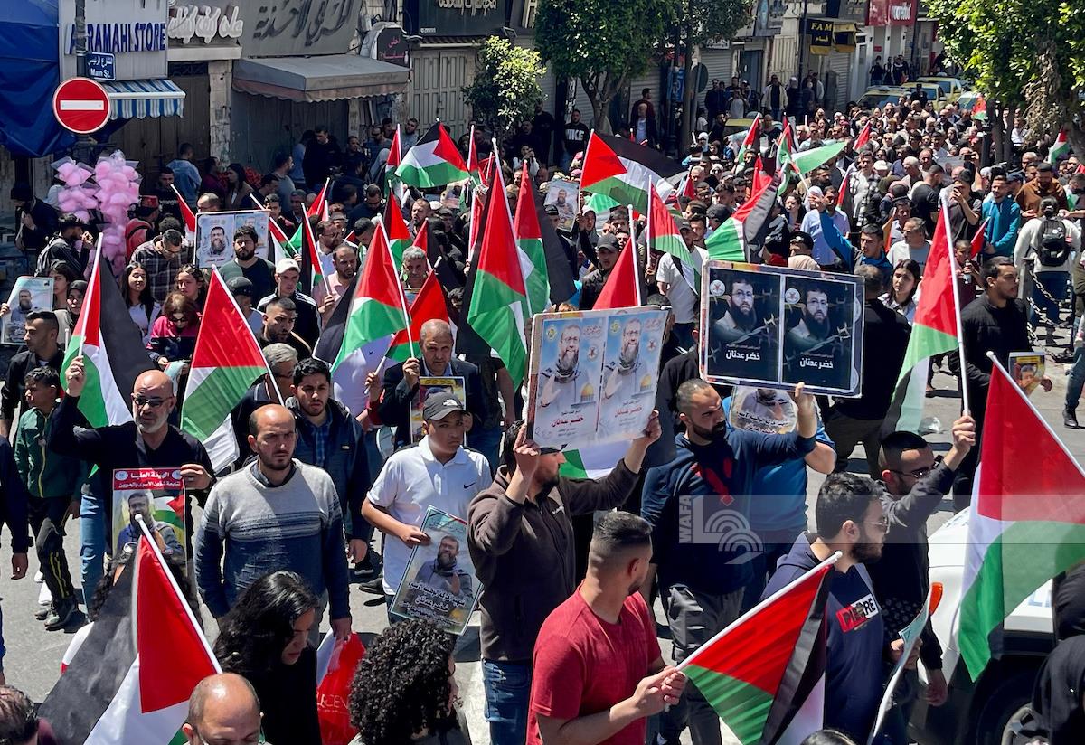 مئات المواطنين يشاركون في مسيرة برام الله استنكارا لجريمة إعدام الشهيد عدنان