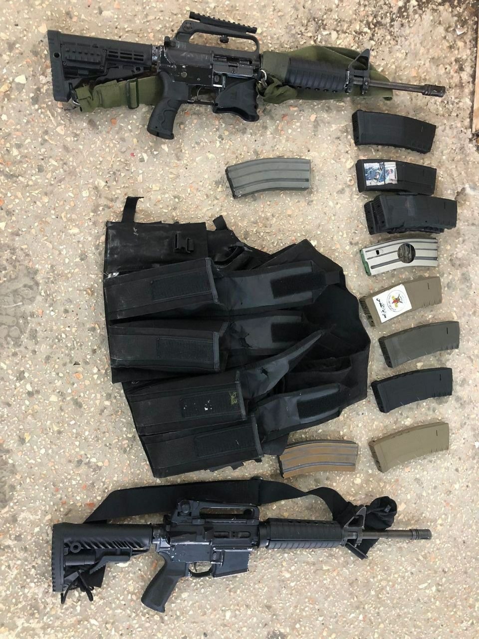 وادعى بأنه "خلال أعمال التمشيط في المنزل الذي اختبأ بداخله الشبان تم العثور على أسلحة منها بندقيتين من طراز M16 وسترات واقية وأمشاط ذخيرة".