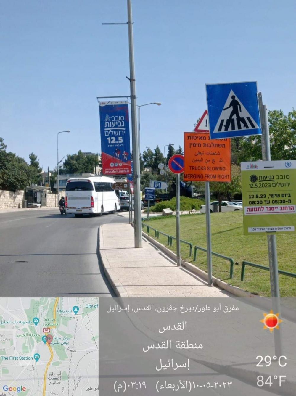 وعلقت بلدية الاحتلال وشرطة الاحتلال إعلانات تمنع بموجبها وضع السيارات ليلة الخميس في شارع بيت لحم، الذي يقع ضمن جولة فعالية ركوب الدراجات الهوائية.