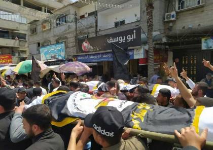 شيعت جماهير فلسطينية حاشدة، ظهر اليوم الخميس، جثامين الشهداء الثلاثة، بينهم القيادي في حركة "الجهاد الإسلامي" علي أبو غالي، جنوب قطاع غزة.