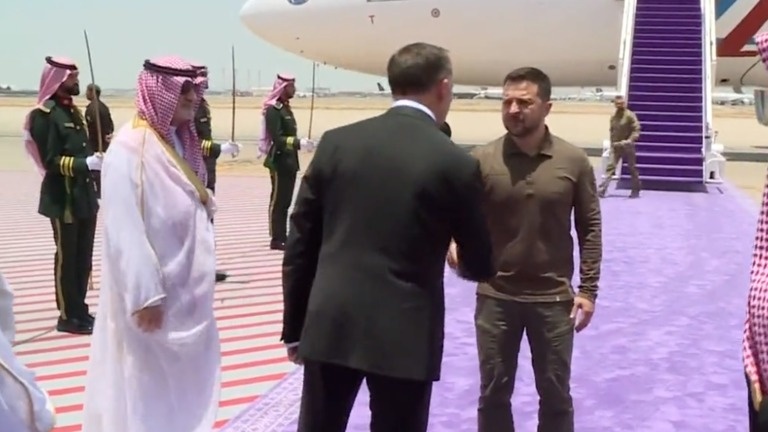 الكوفية وصل الرئيس الأوكراني فلوديمير زيلينسكي الجمعة إلى جدة بطائرة فرنسية أقلعت من بولندا، حيث سيلقتي ولي العهد السعودي محمد بن سلمان ويشارك في القمة العربية الـ32.