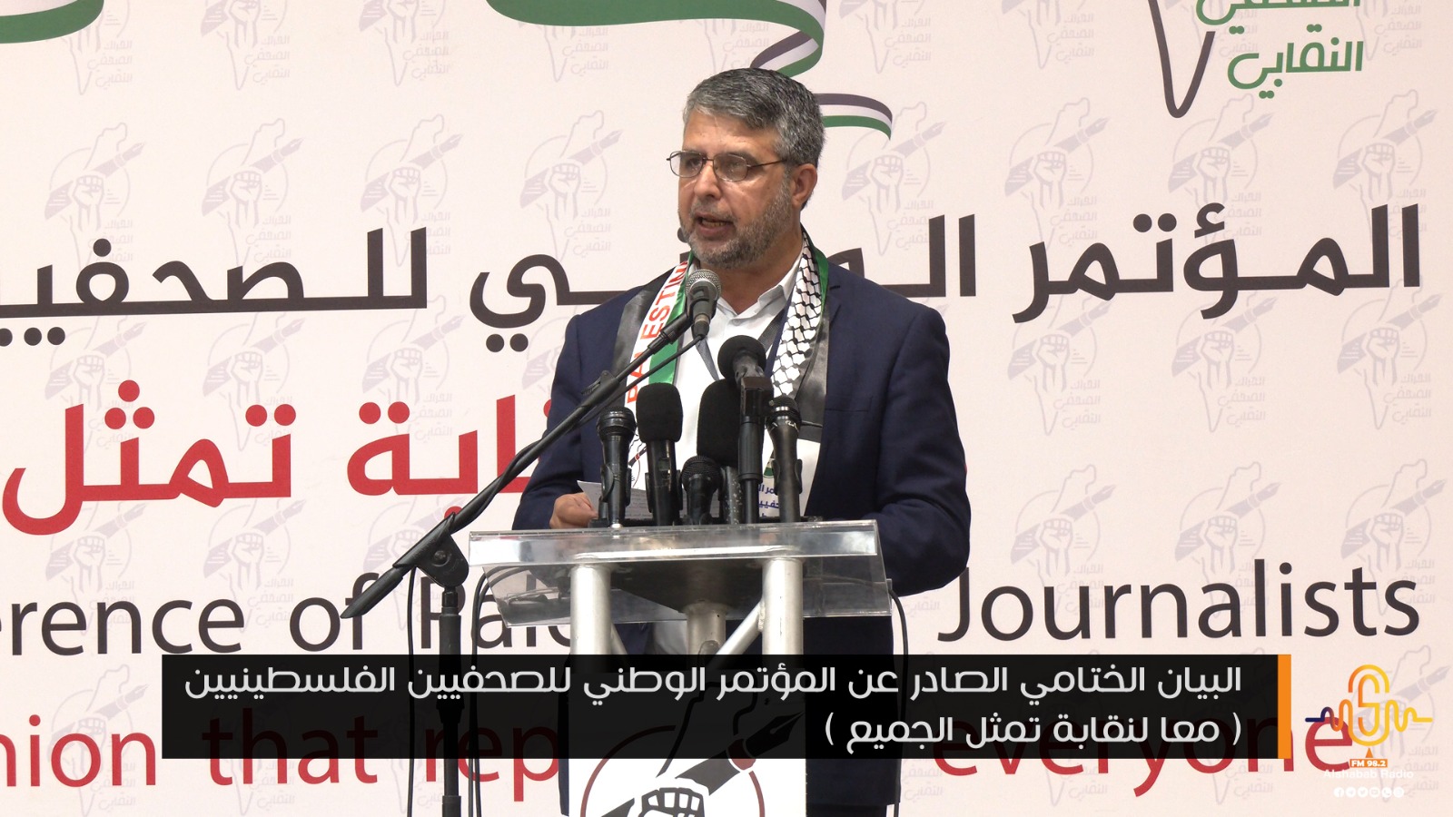 بالفيديو.. البيان الختامي الصادر عن المؤتمر الوطني للصحفيين الفلسطينيين (معا لنقابة تمثل الجميع)