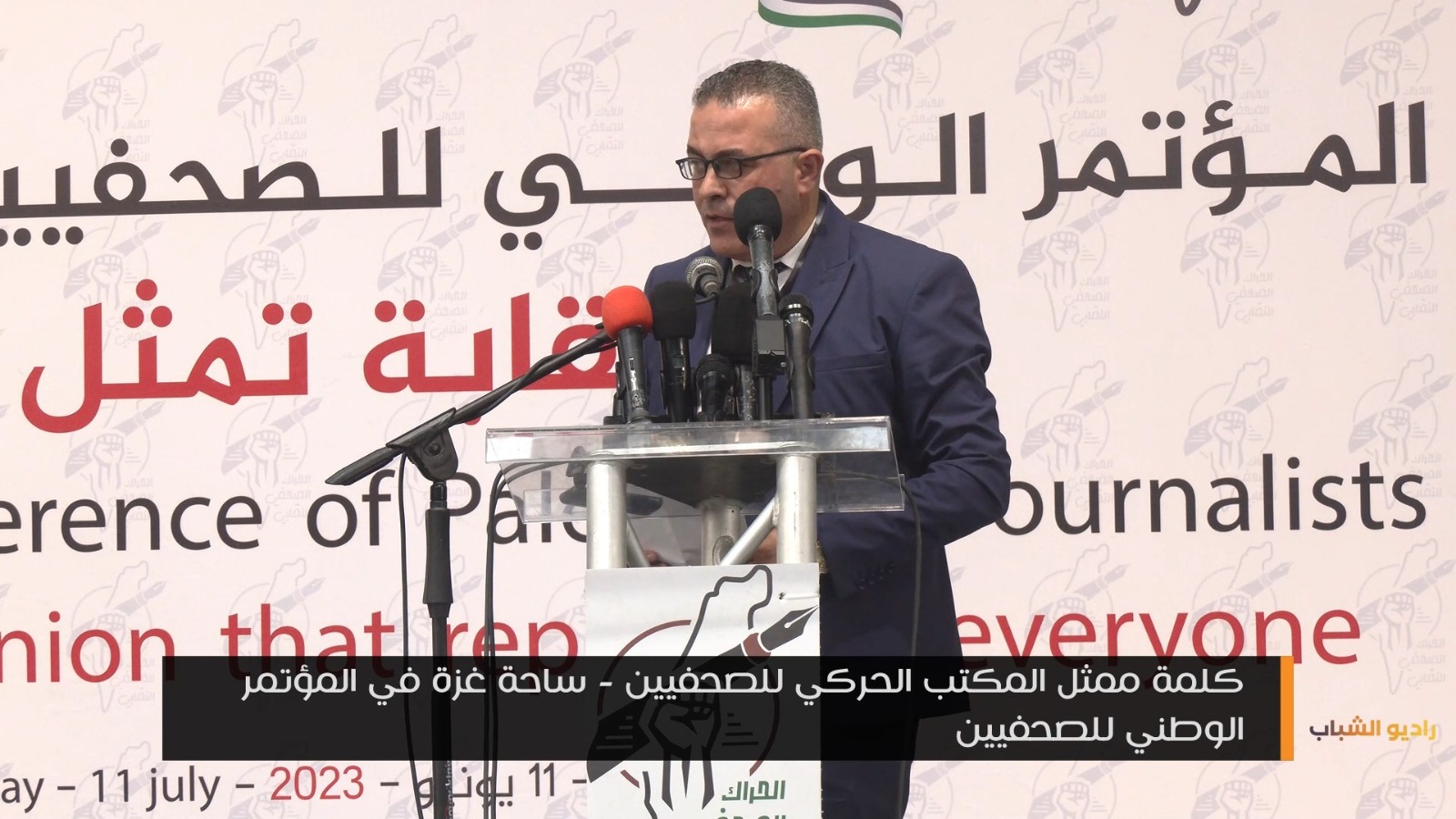شاهد.. كلمة ممثل المكتب الحركي للصحفيين بساحة غزة في المؤتمر الوطني للصحفيين