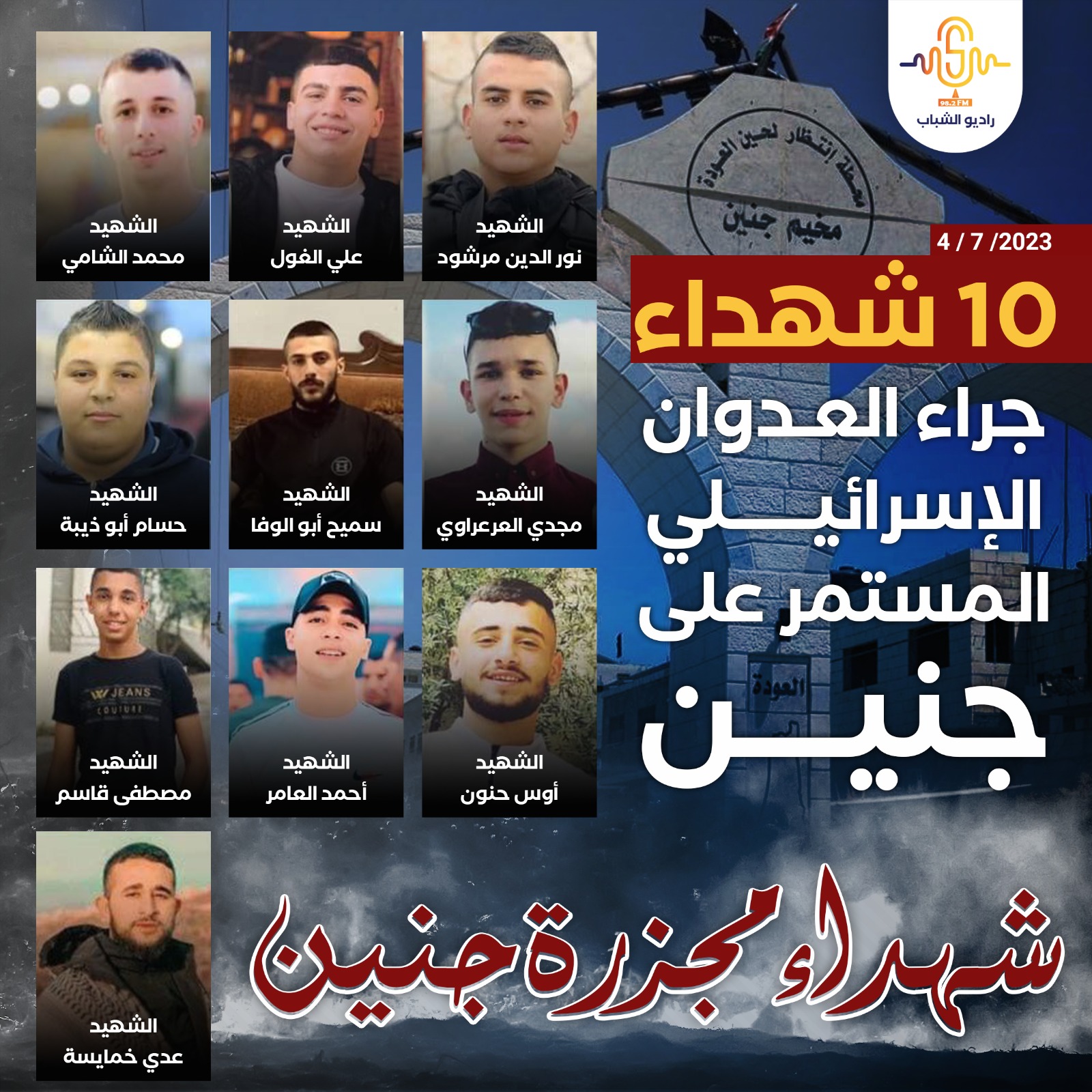 كما نتي حركة الجهاد الاسلامي وجناحها العسكري سرايا القدس - كتيبة جنين ثلة من أبناء شعبنا الأبطال الذين ارتقوا خلال المعركة وهم :