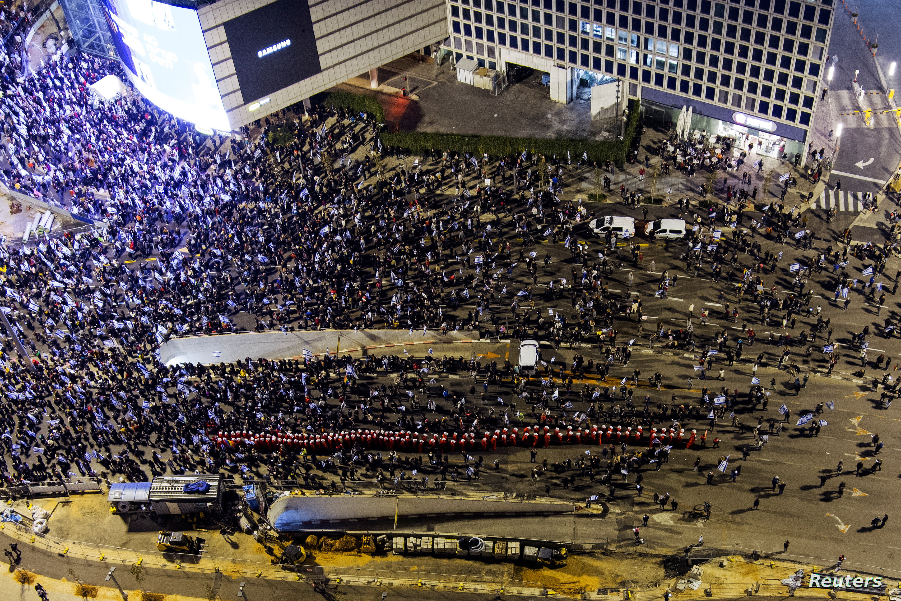 وذكرت القناة 12 العبرية أن نحو 150 ألف متظاهر شاركوا في التظاهرة المركزية بشارع كابلان في تل أبيب، حيث أغلق المتظاهرون مسالك شارع أيالون قرب هرتسليا، كما جرى إغلاق أيالون باتجاه الشمال في تل أبيب.
