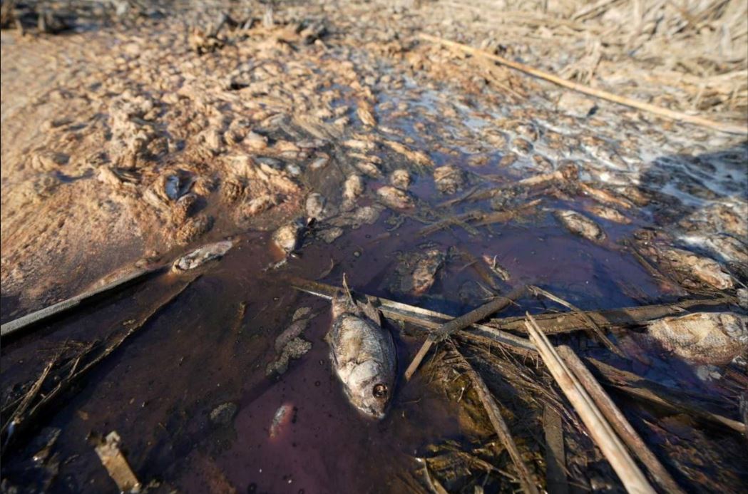 الكوفية ظهرت صور من العراق نفوق أعداد كبيرة من الأسماك في نهر دجلة، جراء انخفاض منسوب مياه النهر، بسبب التغير المناخي.