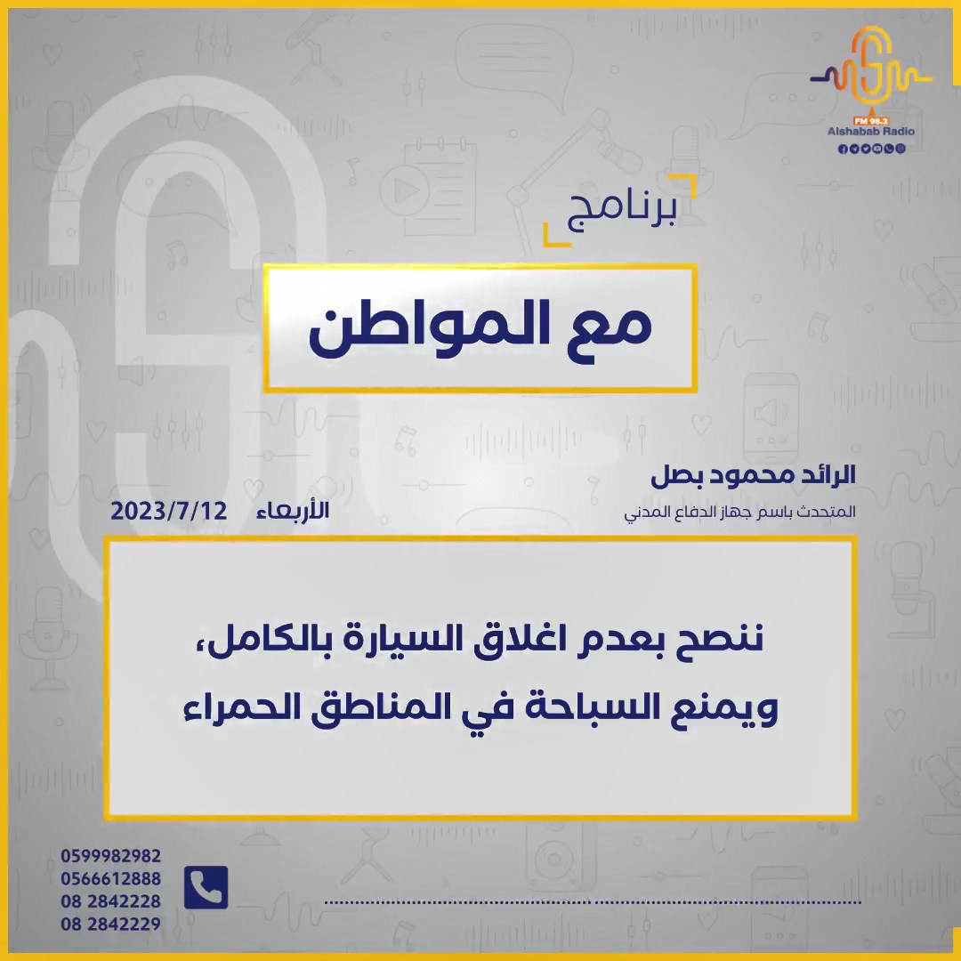 الكوفية الرائد محمود بصل || ننصح بعدم اغلاق السيارة بالكامل، ويمنع السباحة في المناطق الحمراء