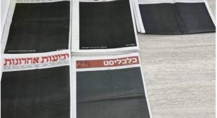 طباعة الصحف العبرية باللون الأسود دون أي كتابة في صفحاتها الأولى